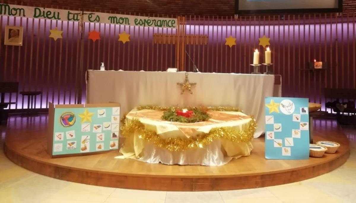 - le 30 novembre pour l’entrée en Avent : les enfants du catéchisme ont vivifié notre célébration par leur présence, et par le beau message qu’ils nous ont adressé sur le sens de la crèche en venant au cours d’une procession commentée lui donner forme devant l’autel.